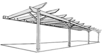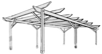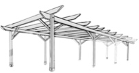 b) ‘Stand-alone’The traditional ‘lean-to’ pergola is frequently made of wood and built against the house to provide a transitory area from the inside to the outside. During the Renaissance period in particular it gave ladies the opportunity to take a walk or sit outside without damaging their complexions.